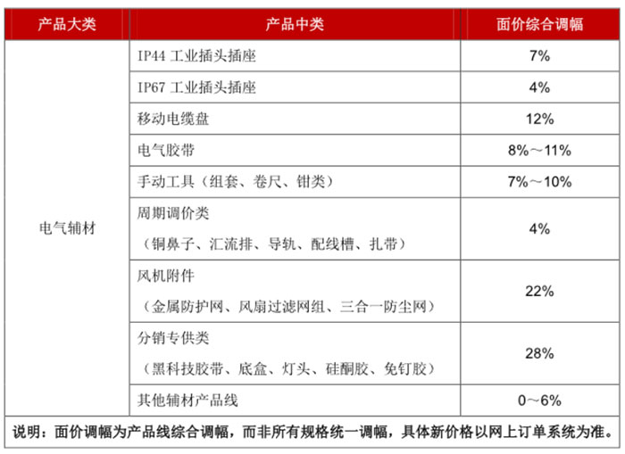 感謝您對德力西電氣的關(guān)注和支持! 因市場原材料的大幅上漲等因素,為更好地向客戶提供高品質(zhì)的產(chǎn)品與服務(wù),經(jīng)德力西電氣有限公司研究決定,自 2021 年 8 月 1 日起對電氣輔材部分產(chǎn)品面價進行調(diào)整,具體調(diào)價產(chǎn)品線綜合調(diào)幅見附表。