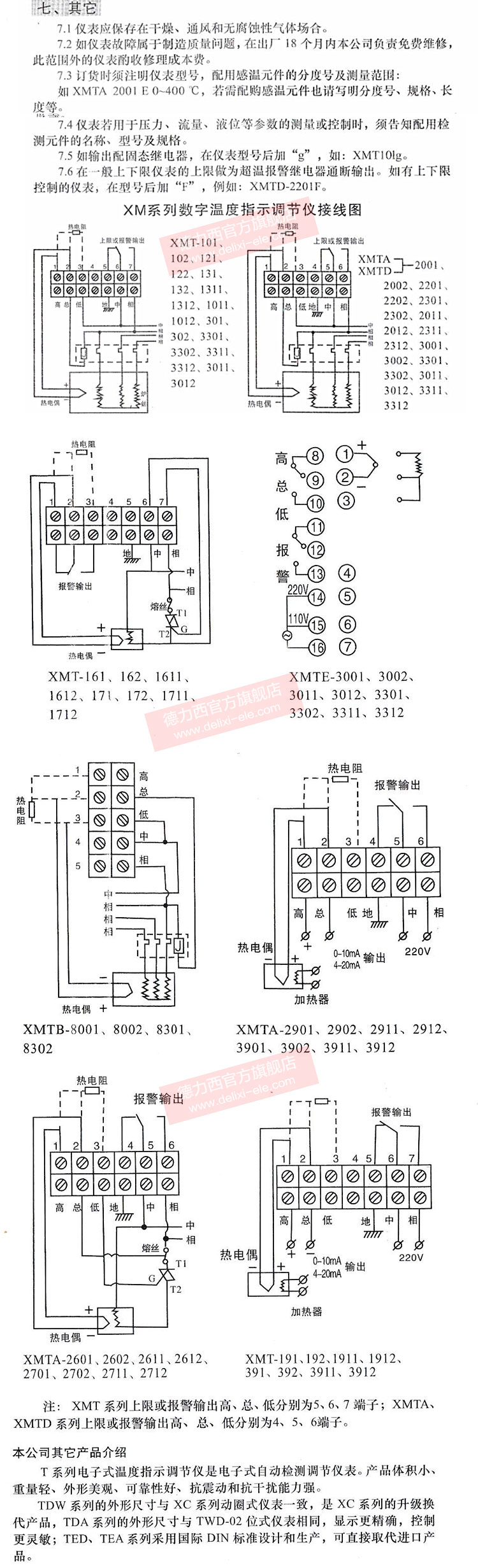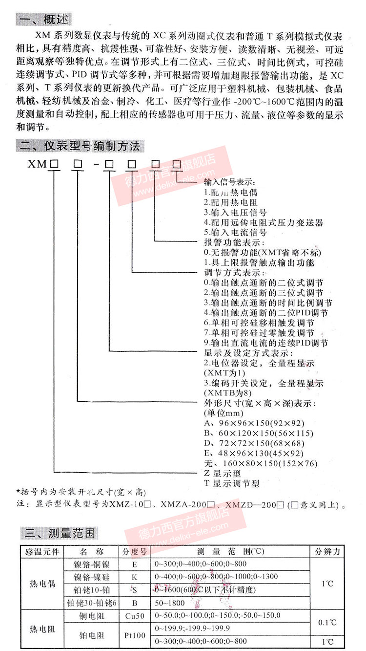 德力西XMT、XMZ系列溫控儀使用說明書和接線圖