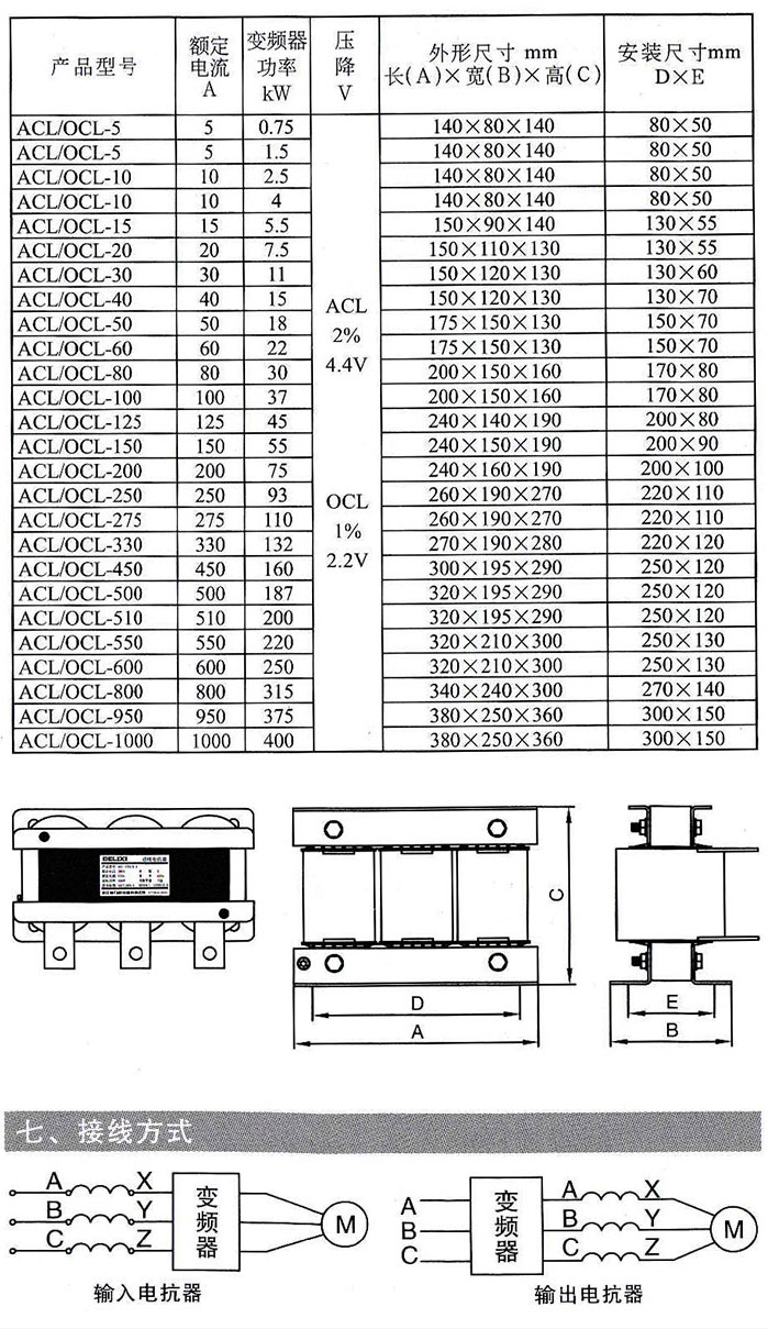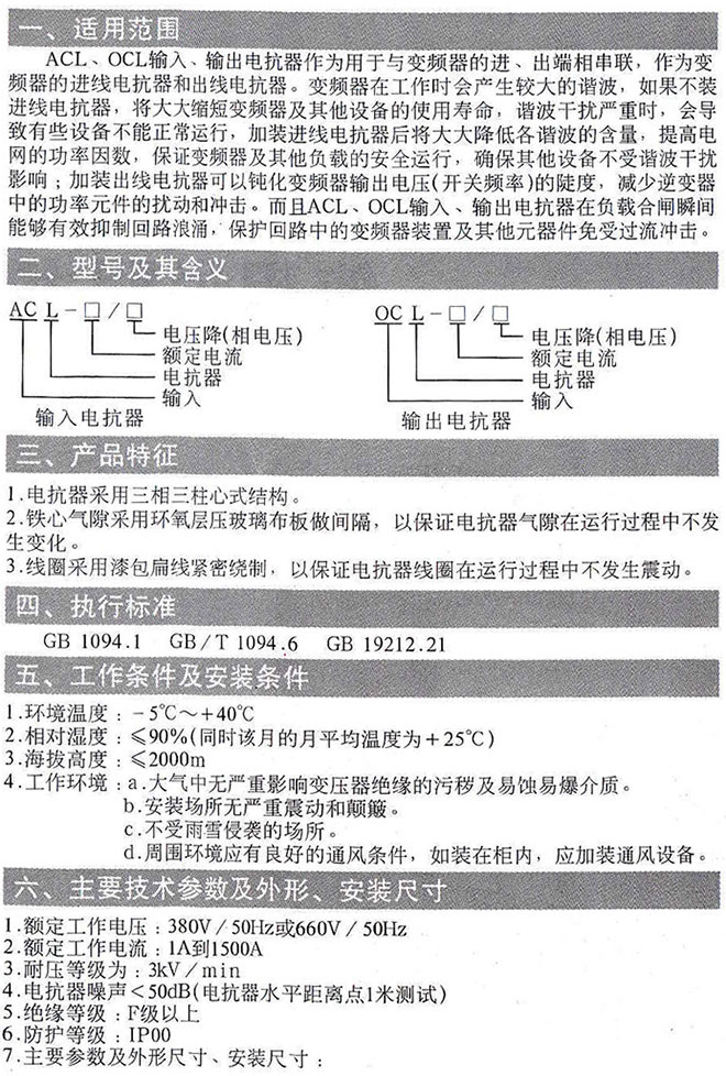 德力西輸入電抗器ACL和輸出電抗器OCL說明書