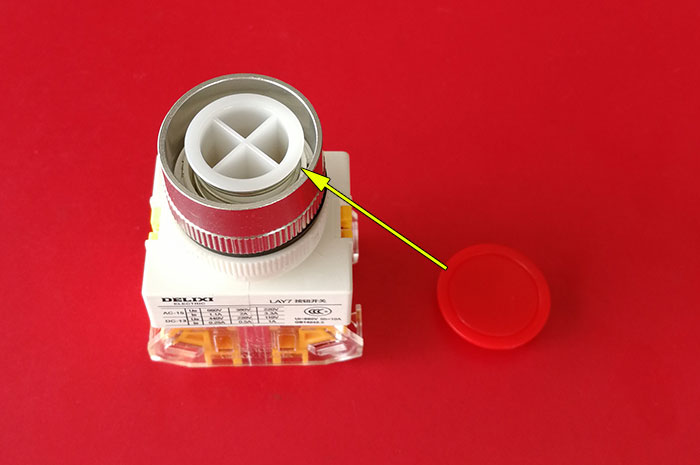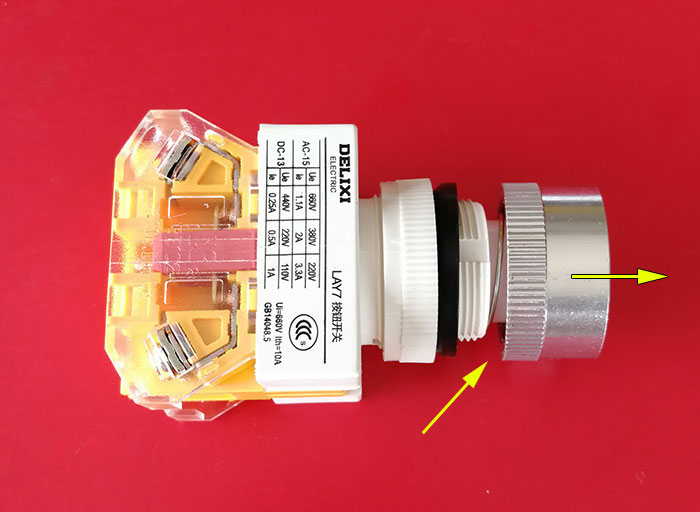 1、拿到德力西LAY7 11BN按鈕后,先擰開金屬帽至完全松開的狀態(tài),此時(shí)金屬帽還拿不下來,我們需要往外使勁拉開即可,不要怕拉壞哦!
