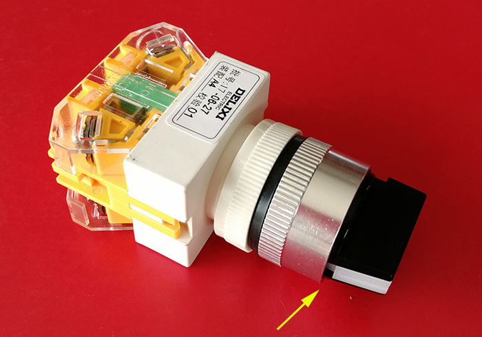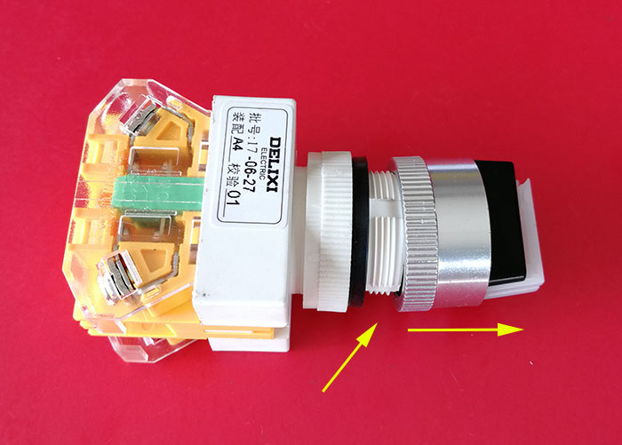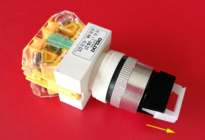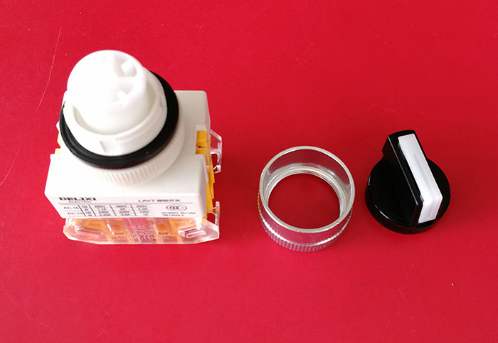 1、德力西LAY7旋鈕開關(guān)拆解的時(shí)候需要先拉開白色的機(jī)竅。