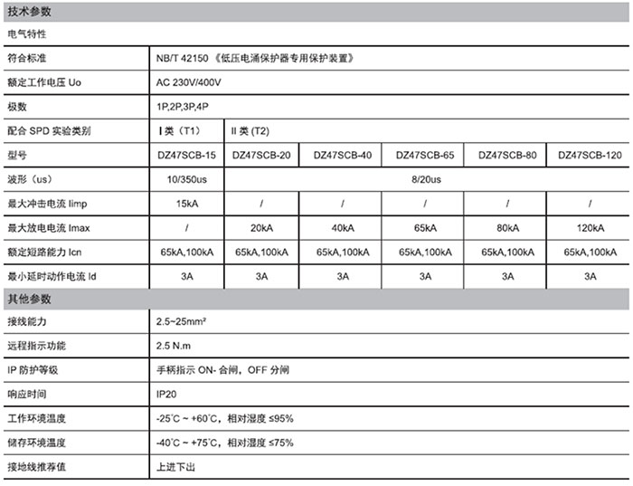 德力西DZ47SCB電涌保護(hù)器專(zhuān)用保護(hù)裝置產(chǎn)品選型手冊(cè)、技術(shù)參數(shù)及外形尺寸